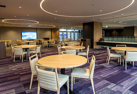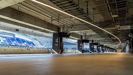 その外側に幅3mの人工芝エリアを設けており、フィールド全体は84m×121mとなっており、サッカー・ラグビーの公式戦開催が可能となります。 - その他 ・フィールドと観客席の距離は8mとなっております。