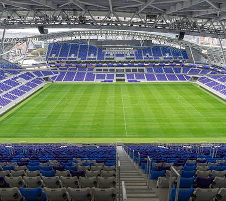 ピッチサイズは68m×105m、天然芝エリアは78m×115m